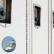 A visão de terra de um navio de cruzeiro de classe sonho que parte de Port Canaveral, na Flórida, é a de sua popa, com as suas cabinas de sacada