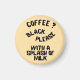Deze magneet draagt de duidelijke boodschap: "Koffie, zwart met een scheut melk." Geen uitleg meer nodig, laat de magneet het woord doen. Ideaal voor op kantoor: hang de magneet op een goed zichtbare plek en je collega weet precies hoe jij je koffie drinkt als die een rondje gaat halen. Ook perfect als cadeautje voor koffieliefhebbers die precies weten wat ze willen.