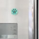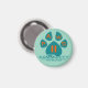 Um ímã com o logótipo comunitário PAWS 4 sobre um fundo verde-menta