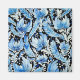 Uma pintura espantosa no estilo tradicional de Petrykivka apresenta flores azuis e azuis delicadas que florescem vibrantemente contra um fundo negro profundo. Cada pétala é meticulosamente detalhada, mostrando incríveis pinceladas e padrões ornamentais típicos desta arte folclórica ucraniana. O design floral irradia elegância e harmonia, com arranjos simétricos e gradientes sutis que destacam a habilidade do artista. O pano de fundo escuro intensifica as cores, fazer em que as flores parecem quase luminosas, enquanto elementos ornamentais menores como folhas e tendões conferem sentido de movimento e vida à composição.