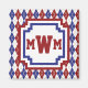 Argyle vai de 8 bits e Americana com este esquema de cor vermelho, branco e azul. Um ponto de contraste leve e leve adiciona um toque de retrorreflector. Personalize o monograma com as iniciais apropriadas para um toque personalizado.