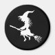 Uma bruxa assustadora voando sobre uma vassoura acentua este ímã, fazer perfeito para o Halloween.