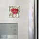 O amor cita ímãs. Esse ímã quadrado apresenta um fundo de pétala rosa em branco e vermelho, com a citação, "amor incondicionalmente - não importa o que''.