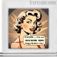 Magnet com uma ilustração retrorreflectora em estilo de desenho de uma mulher bonito com uma nuvem de texto (opcional) para seus próprios textos (engraçados ou outros). Bom Dia de as mães, assim como seu aniversário ou outra ocasião festiva.
