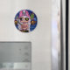 Uma fada pirata de olhos grandes com um chapéu cor-de-rosa e seu pirata de papagaio de estimação