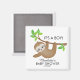 Um doce ímã de preguiça para um chá de fraldas de garotos apresentando uma preguiça bonita pendurada em um galho de árvore, colocado sobre um fundo branco de aquarela. Itens correspondentes disponíveis em nosso compro.