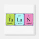 Talan se soletrava como Ta La N (Tantalum Lanthanum Nitrogen) em um ímã para o cientista em você.