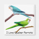 Pintor de escova de um papagaio Quaker de estimação, pela artista da natureza, Carolyn McFann sobre presentes, cartas e postagens de qualidade para amantes de pássaros.