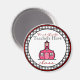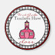 Um ímã para professores com o logotipo da dentro da escola cor-de-rosa, uma estrutura em forma de círculo de gingham preto com forma vermelha. O texto preto e vermelho diz "Professores de primeiro grau têm classe".