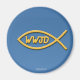 Íman temático cristão com símbolo de peixe ... WWJD (O que Jesus faria)