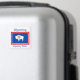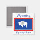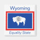 Uma imagem autêntica de qualidade da bandeira do Wyoming, que se ajusta entre o nome do Estado e o apelido sobre um fundo de cor de bandeira.