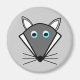 Este ímã apresenta um desenho em estilo kawaii de um Lobo das cinzas bonitinho com orelhas pontiagudas, olhos azuis brilhantes e nariz preto cercado por bigodes. Este lobo fofo é perfeito para o Halloween ou para amantes de os animais.