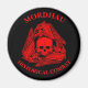 Logotipo clássico do crânio e do raven Mordhau num ímã redondo