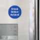 Íman azul com palavras Dream Acredite em Achieve! em letras brancas.
