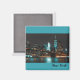 Mostre este ímã quadrado do horizonte de Nova Iorque à noite no seu frigorífico ou em qualquer lugar que quiser.