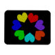 Este incrível ímã apresenta uma imagem digitalmente criada de um círculo de corações amorosos. Cada coração tem uma cor diferente do arco-íris. Os corações vermelho, laranja, amarelo, verde, azul, indigo e violeta são uma forma divertida de expressar seu amor por um namorado, namorada, marido ou esposa. O fundo é preto para criar o impacto máximo.
