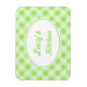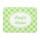 Um padrão de gingham verde limão decora este ímã de cozinha fofo. Personalize este ímã mudando o texto para atender às suas necessidades. o design é da arte original.