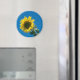 Flor de girassol. Amarelo brilhante contra céu azul profundo.