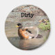 Magnet para lavadora de louça, Robin tomando banho, com a palavra Suja para pratos sujos.