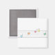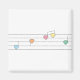 Um legal design musical em um ímã que tem notas musicais feitas com corações em azul pastel, rosa, laranja, amarelo e verde em um funcionarios musical com cinco linhas.