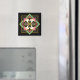 Decorem o vosso Frig com este belo ímã de cavalos celtas. Quatro lindíssimos garanhões brancos posam sobre um fundo gráfico colorido. Bom presente para qualquer Dia de os namorados equestre ou Dia de as mães.