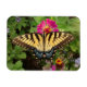 Íman de geladeira com foto de uma borboleta amarela de rabo-de-banho de tigre em uma flor.