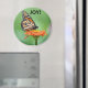3" round magnet with Monarch butterfly on Zinnia flower with the exhortation JOY!