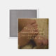 Um ímã com uma fotografia de pés de bebês com uma citação inspiradora.