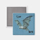Esta é uma imagem de vintage de um morcego voador azul tonto. Tem uma aparência tridimensional e é colocado sobre um fundo de vários blues. O texto diz que eu amo morcegos! Veja minha loja Art by MAR para combinar produtos com este design.