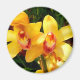 Fechamento de uma Orquídea Amarela de Cymbidium com labela vermelha, tomada na Ilha da Madeira