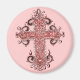 Este belo, requintado, ímã apresenta uma cruz vintage, bela, intrincada, rica, ilustrada, de cor rosa burgata. Este ímã está disponível em forma quadrada e redonda e em vários tamanhos! Clique no botão 'Personalizar!' à direita e altere a cor de fundo do ímã para uma cor de sua escolha! Uma obra de arte verdadeiramente única, refinada, detalhada e bonita! para ficar na sua geladeira, gabinete de arquivos, lavadora de louça, ou na sua própria superfície de metal favorita!