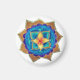 Mandala, pintada à mão, fresca e bela. Arte amarela, azul, dourada, mandala roxa sobre o ímã.