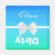 Um ímã elegante perfeito para qualquer cozinha. Tem um bonito azul se formando em uma cor verde. Um gráfico de uma fita branca e um arco percorre o centro. Use a máquina de lavar louça para avisar a todos se os pratos estão limpos ou sujos.