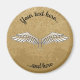 Ilustração ampla de asas bege abertas. Fundo bege verde. Texto personalizado superior e inferior.