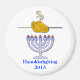 Grato magnata de Ação de Graças / ímã comemorativo de Hanukkahning com gráficos humorísticos de um peru assado em uma haste de cuspe acima de uma menorah. Texto azul, na parte inferior, Thanksdoakkah 2013. Que época especial para celebrar e não acontecerá novamente por 70.000 anos!