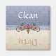 Íman bonito de máquina de lavar louça, azul e úmida, com azul, no topo, e um design fino e elegante, no fundo. Gráficos de decoração de joias de tom dourado, no meio. O texto branco lê Limpo e bronzeado lê Sujo. Faz um presente de anfitriã excelente.