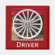 Fotografia de uma roda de vagão branca com texto personalizável "condutor" impresso abaixo.
