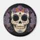 Rosas roxas roxas rodeiam este belo dia do crânio de açúcar morto.