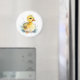 Um ímã giro redondo com uma ilustração de aquarela de patos bebês.