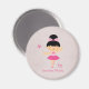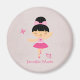 Este ímã de geladeira redonda tem um fundo roxo com uma bailarina preta de cabelos em pé no dedo da pata. Há uma borboleta e corações em cada lado dela. Na parte inferior, você pode personalizar facilmente seu nome! Alguns elementos deste design são feitos por http://www.mygrafico.com/stockberry-studio/aff_124.html