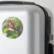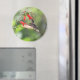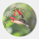 Íman redondo de 3" com uma fotografia de um beija-flor que se alimenta de uma flor vermelha