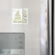 Um ímã com uma ilustração de um bolo de chá de fraldas com um esquema de cores verde, castanho e creme com carruagem de bebê verde correspondente no topo. O lado direito é verde, com a forma marrom. O texto marrom diz "BABY". O fundo é bolinhas verdes. Excelente por um favor chá de fraldas. Procure convites e postagens correspondentes na categoria "Bebê" da Paperie de Jill.