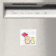 Íman branco de fundo com desenho animado de ouriço giro casal de mãos dadas e segurando balões em forma de coração com o texto "recem casados". Modelo personalizável para mudar para os nomes do noivo e noiva e a data do casamento. Adequado como um favor de festa de casamento para os seus hóspedes lembrarem-se do seu evento de casamento.