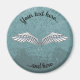 Ilustração ampla de asas de cinza azul. Partículas azuis. Texto personalizado superior e inferior.