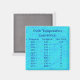 Este magente é bonito e útil. Ele apresenta um fundo azul com círculos abstrato. Há uma conversão de temperatura de Fahrenheit para Centigrado para Gás Mark e novamente. Perfeito para quem tem um livro de cozinha de um país diferente ou alguém que se mudou para outro país!