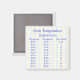 Este magente é bonito e útil. Ele apresenta um fundo de listras pastel em cores de amarelo, azul e branco. Há uma conversão de temperatura de Fahrenheit para Centigrado para Gás Mark e novamente. Perfeito para quem tem um livro de cozinha de um país diferente ou alguém que se mudou para outro país!