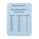 Este magente é bonito e útil. Apresenta um fundo de azul pastel com espirais brancas. Há uma conversão de temperatura de Fahrenheit para Centigrado para Gás Mark e novamente. Perfeito para quem tem um livro de cozinha de um país diferente ou alguém que se mudou para outro país!