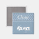 Este ímã bonito apresenta um fundo azul. O topo tem um bonito design geométrico sobre o fundo e diz limpo. Na parte de baixo é um fundo azul sólido e diz sujo. Use a máquina de lavar louça para avisar a todos se os pratos estão limpos ou sujos.