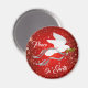 Personalize este inspirador "Um dos tipos" Magneta de Natal Branco! Ele apresenta uma pomba branca de Natal Serene que voa Carregando e um ramo de oliveira em um fundo de Natal Vermelho entre flocos de neve, com Cinzas voadoras e fitas prateadas se espalhando... "Paz na Terra"! Este é um Design de Arte Original do Artista Kerry Miller.