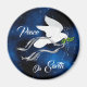 Personalize este inspirador "Um dos tipos" Magneta de Natal Branco! Ele apresenta uma pomba branca de Natal Serene que voa Carregando e um ramo de oliveira entre as estrelas de Natal, com Cinzas e fitas prateadas se espalhando... "Paz na Terra"! Este é um Design de Arte Original do Artista Kerry Miller.